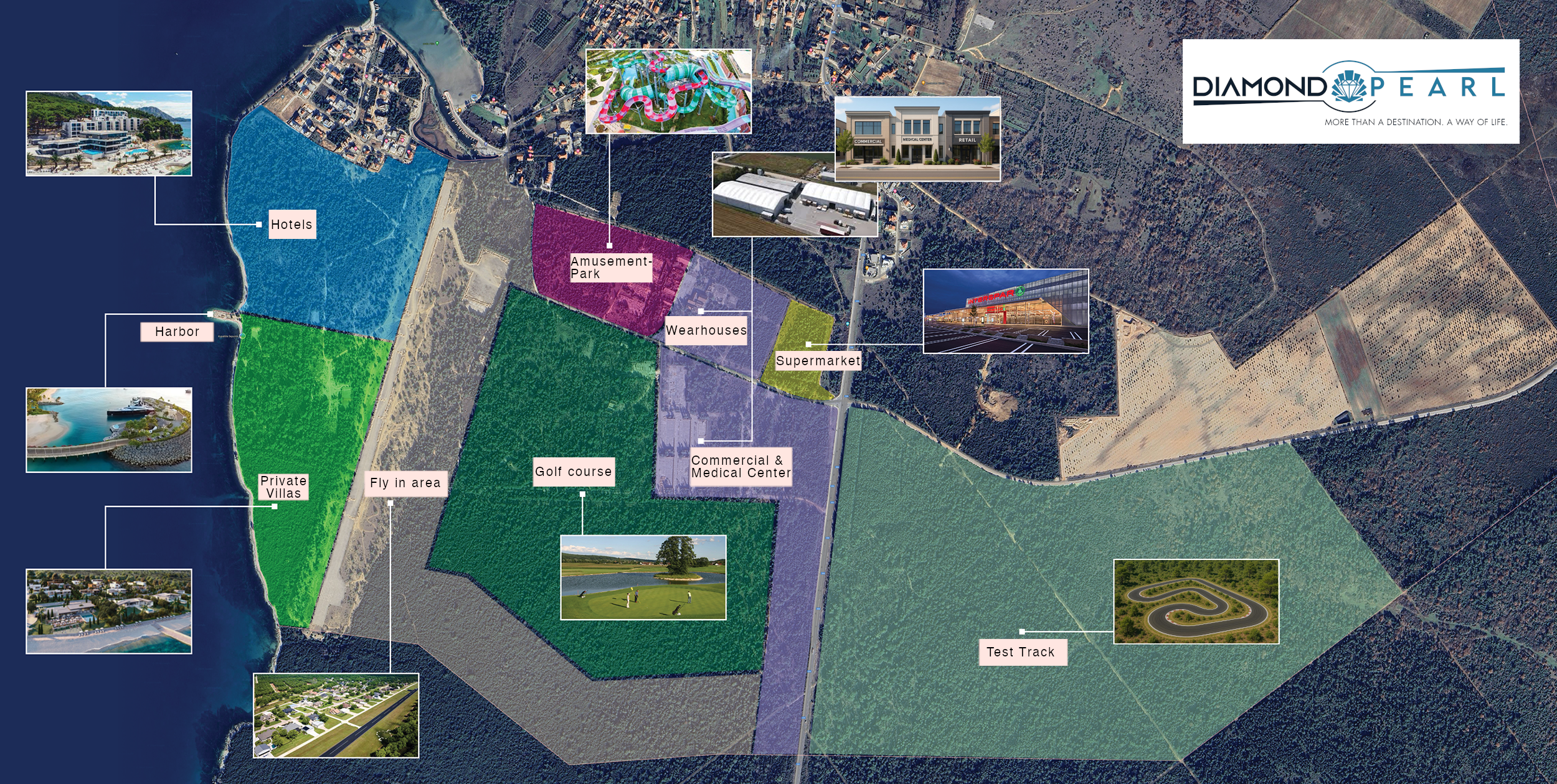 Diamond Pearl is the only development in Europe that seamlessly combines private villas with direct taxiway access, a coastal marina, and a five-star resort — all in one master-planned destination. Set on an untouched stretch of Adriatic shoreline, it offers rare scale, complete design freedom, and full access by land, air, and sea.
